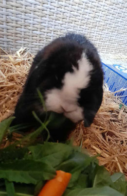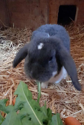 echte Kaninchenfreunde (auch mit älteren Kindern) die sich gerne mit ihm abgeben, sich ins Gehege setzen für ausgiebige Kuschel- und Spielzeiten. Für ein artgerechtes